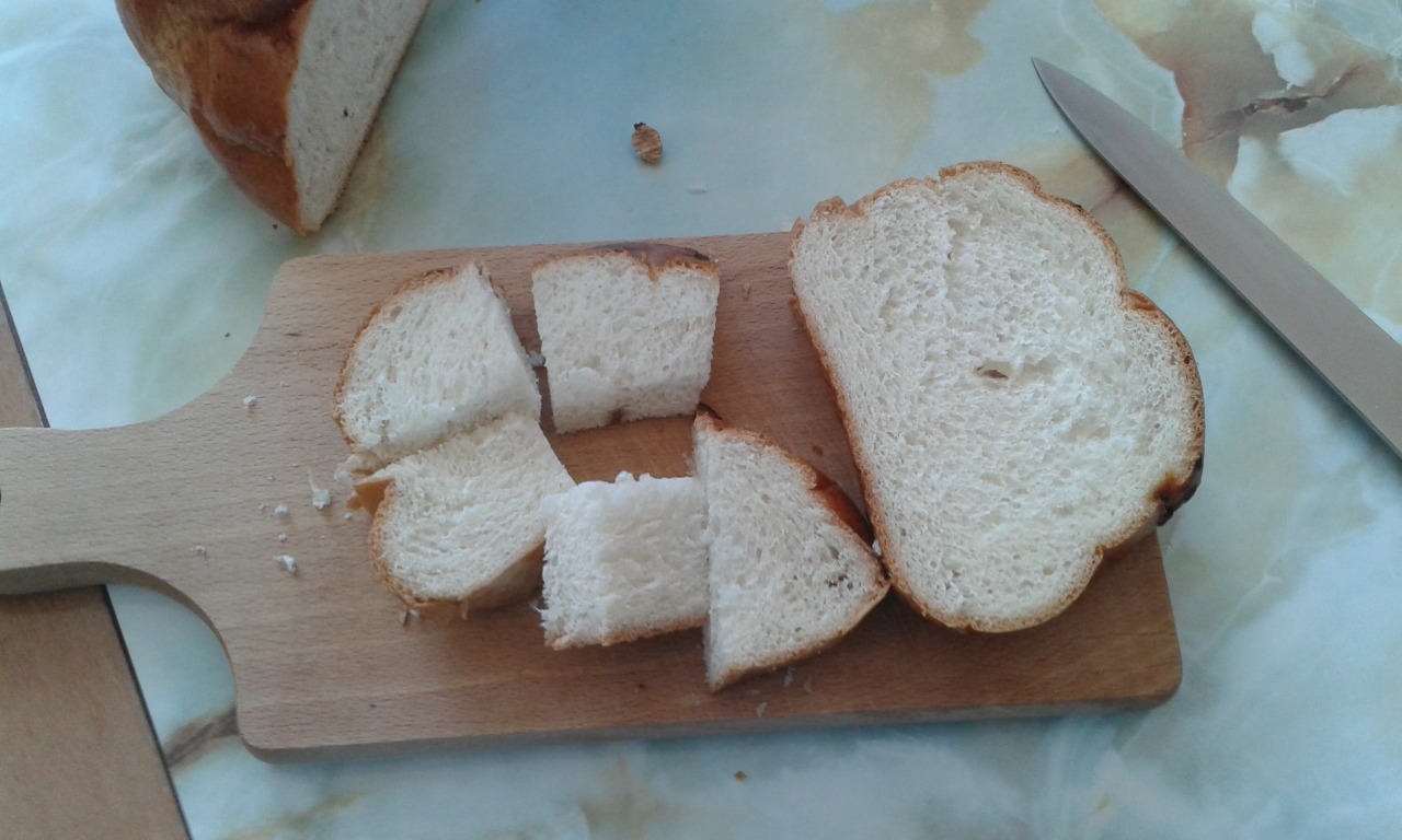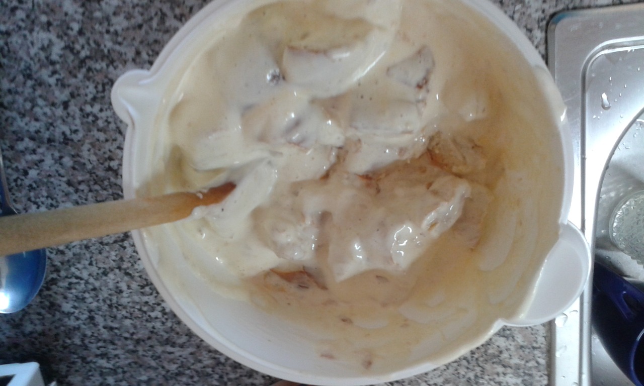 1. Rožky (vianočku) si nakrájame na kolieska a polejeme ich vlažným mliekom. Oddelíme žĺtka od bielkov, vyšľaháme z bielkov tuhý sneh a do neho pridáme práškový a vanilkový cukor.